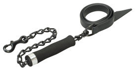 This Weaver Livestock exclusive helps young exhibitors control their cattle. Developed by our research and development team, the Sure Hand Lead with its unique foam grip handle and regular chain encourages a strong or stubborn animal to keep its head up while requiring less strength from the exhibitor. The versatile Sure Hand Lead features an easy-care Brahma Webb® strap and makes a perfect alternative or replacement to any standard leather show halter lead. The 1" x 36" Brahma Webb® lead features a 14" black regular chain.